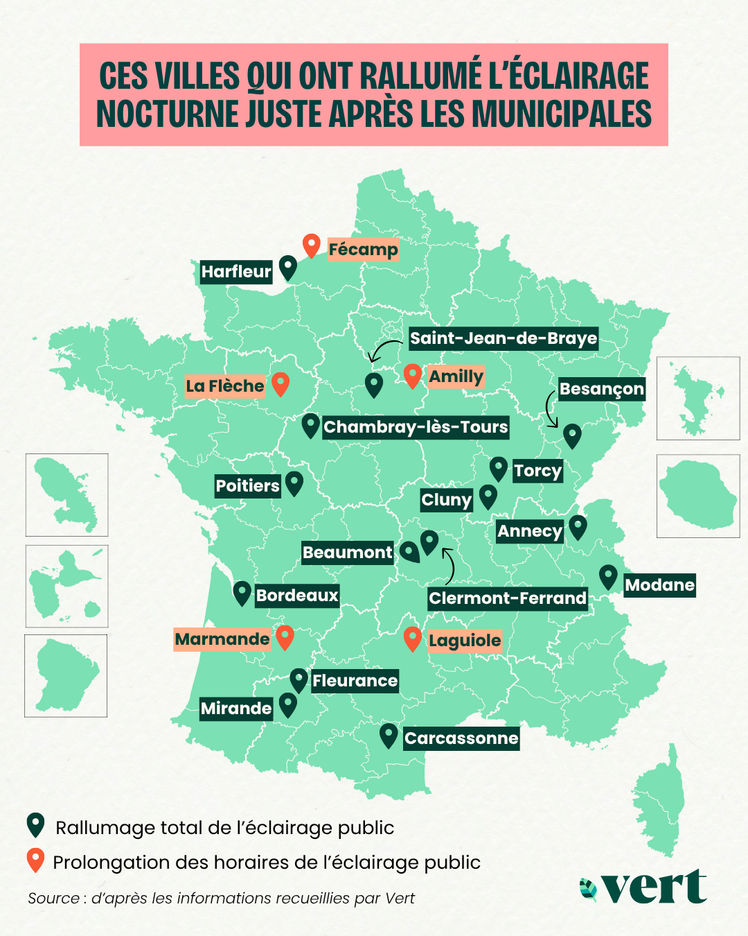 À peine élu·es, nombre de maires de droite et d’extrême droite ont pris la même première mesure : rétablir l’éclairage public la nuit. «J’imagine qu’il y a un compteur quelque part, donc j’irai et je rallumerai», avait promis le nouvel édile de Bordeaux (Gironde), le macroniste Thomas Cazenave, lors d’un débat télévisé qui l’opposait au sortant (Les Écologistes) Pierre Hurmic. C’est désormais chose faite. Au moins 20 autres communes telles que Carcassonne (Aude), Clermont-Ferrand (Puy-de-Dôme) ou encore Poitiers (Vienne) ont emboîté le pas.