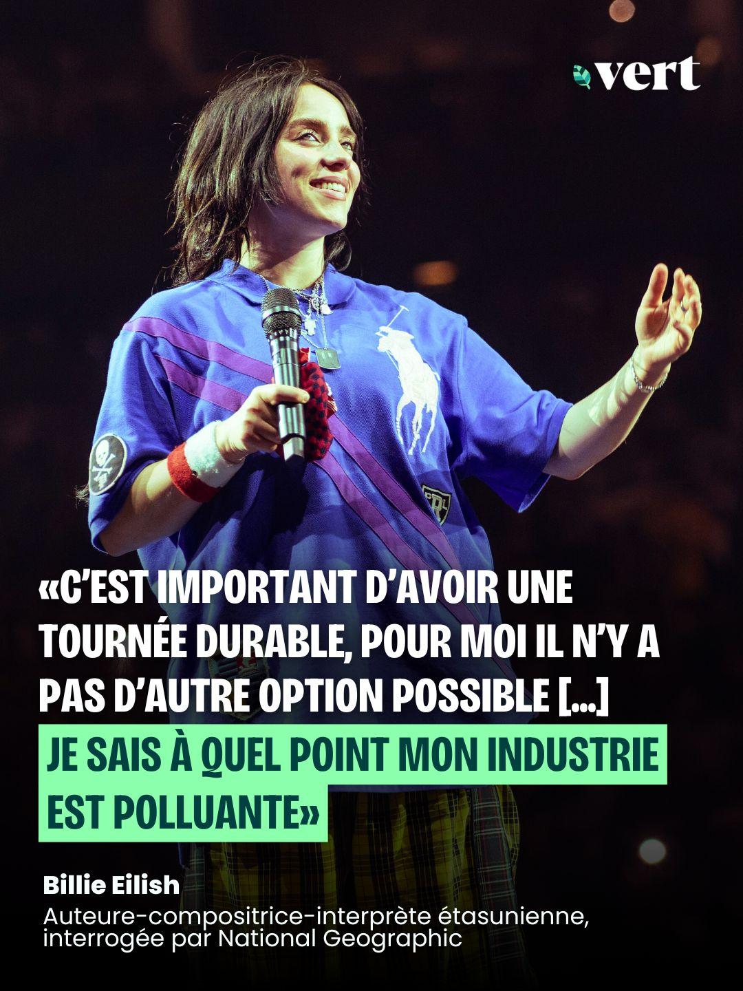 Show devant. Dans une interview à National Geographic, la popstar étasunienne Billie Eilish s’est confiée sur son écoanxiété et sur ses actions pour rendre sa tournée mondiale la plus écologique possible : «C’est important d’avoir une tournée durable, pour moi il n’y a pas d’autre option possible […] Je sais à quel point mon industrie est polluante.» Aidée par l’ONG Reverb, qui vise à rendre l’industrie musicale plus soutenable, elle a proposé lors de ses concerts des options végétales, mis en place des stands de sensibilisation aux enjeux climatiques et incité ses fans à venir en transport en commun. Selon elle, la tournée de 88 dates a permis d'éviter que 103 620 bouteilles d'eau ne finissent à la décharge et a récolté 13 millions de dollars (11 millions d’euros) pour des associations qui luttent contre les inégalités alimentaires et la crise climatique. Les groupes Metallica et Paramore ont décidé de suivre l’exemple. - National Geographic (en anglais)