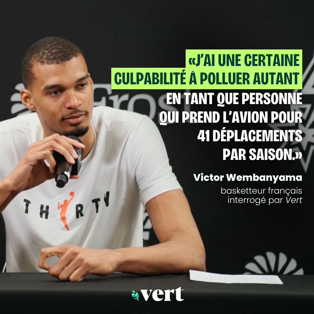 Victor ou à raison. On lui courait après depuis des semaines ! Vendredi soir, après la victoire des San Antonio Spurs contre Dallas (139-120), Vert a réussi à tendre son micro à la superstar française du basket, Victor Wembanyama. Interrogé sur l’impact environnemental de la NBA, il a dit «ressentir une certaine culpabilité de polluer autant», évoquant les «41 déplacements par avion par saison» de chacune des 30 équipes du championnat étasunien. Pour compenser son impact carbone individuel, «Wemby» n’écarte pas l’idée d’œuvrer, à sa manière, pour la protection de l’environnement. Il a parlé d’«investir […] mais pas dans un but lucratif». Mais ce que l’athlète tricolore ignore peut-être, c’est que 65 à 80% des émissions totales de la grande ligue nord-américaine de basket-ball proviennent des déplacements des supporters. C’est ce que vous découvrirez dans notre grand décryptage sur la NBA à paraître ce vendredi.