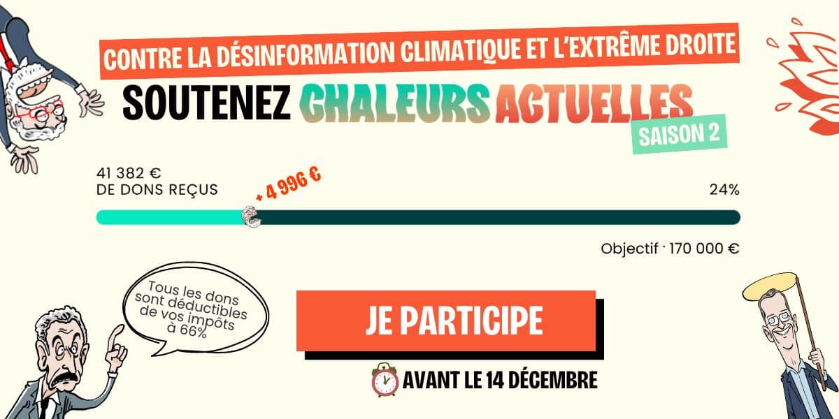 🔥 Vous êtes déjà plus de 1 000 à avoir participé à notre campagne : merci❤️🔥! Pour que nous soyons plus forts en 2026 face à la désinformation, nous avons besoin de 170 000 €. Si vous pensez comme nous que ce combat est essentiel pour notre démocratie, n’attendez plus, prenez part à l’aventure Chaleurs actuelles !