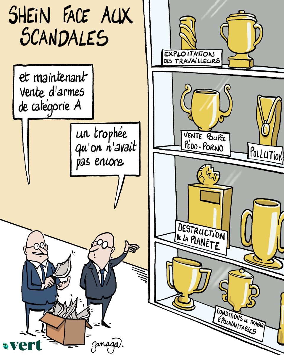 Annoncé il y a un mois, ce partenariat entre la Société des grands magasins (SGM) – qui exploite le BHV – et la plateforme controversée a suscité une vague de critiques, suivie de nouvelles polémiques. Le gouvernement français a annoncé ce mercredi saisir la justice pour demander le blocage du site de Shein pour non-conformité aux lois du pays. La Répression des fraudes (DGCCRF) avait signalé à la justice la vente sur le site de «poupées sexuelles d’apparence enfantine». Et, ce mercredi matin, le député (Les Républicains) Antoine Vermorel-Marques a affirmé y avoir découvert des armes de catégorie A : armes à feu et armes blanches.