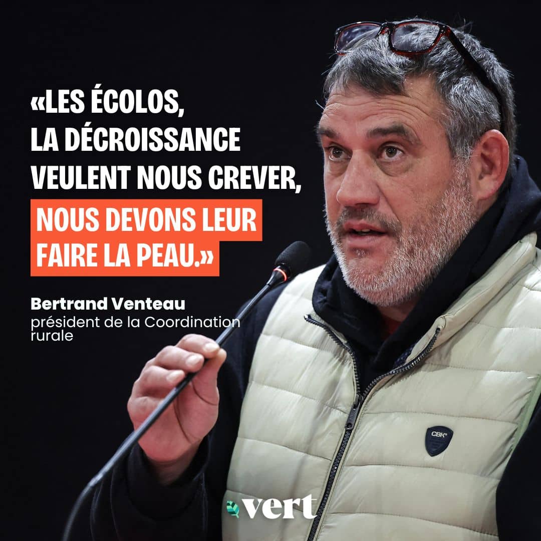 · Lundi, le parquet d'Auch (Gers) a annoncé avoir ouvert une enquête concernant des propos tenus le 19 novembre par Bertrand Venteau, le nouveau président de la Coordination rurale. Lors de son élection à la tête de ce syndicat agricole adepte des coups de force, l'éleveur avait déclaré vouloir «faire la peau» aux «écolos», conduisant plusieurs élu·es écologistes à saisir la justice. - La Dépêche