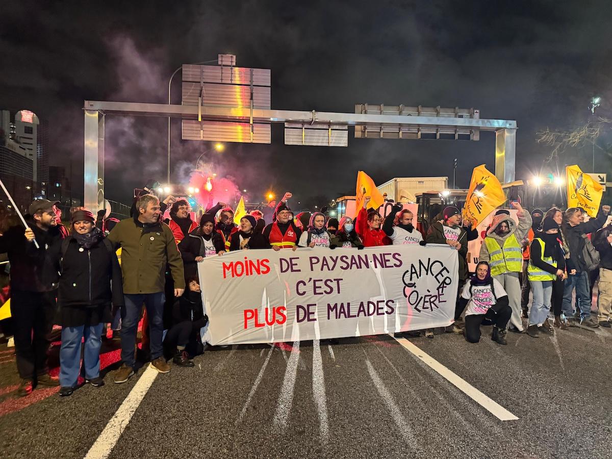 · Ce vendredi matin, Cancer colère, les Soulèvements de la terre et la Confédération paysanne ont mené une opération escargot sur le périphérique parisien, vers la porte de Montreuil. «Les paysans et les malades du cancer ont les mêmes adversaires : les industriels de l’agriculture», explique la militante Fleur Breteau. À l’issue de l’opération, les porte-parole de la Confédération paysanne Thomas Gibert et Stéphane Galais ont été interpellés. - Vert