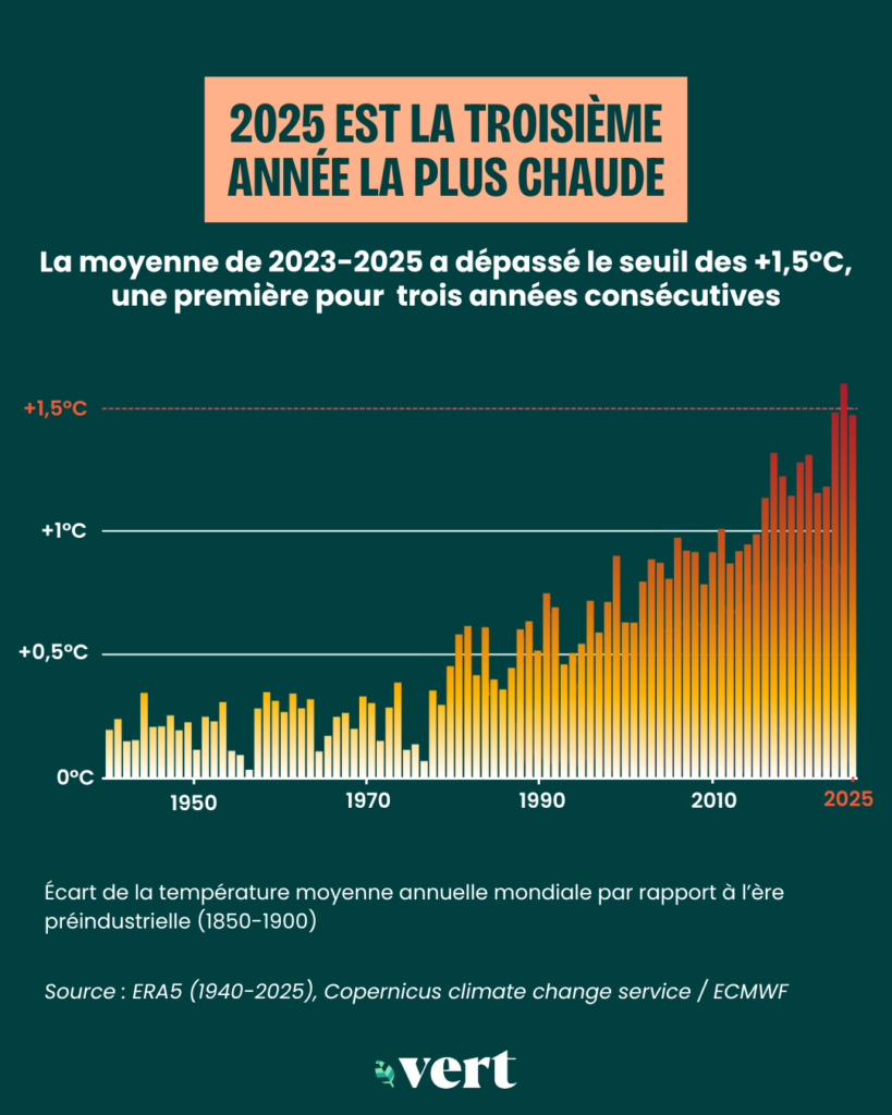 2025 a été la troisième année la plus chaude jamais enregistrée