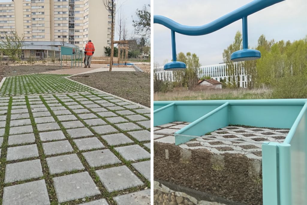 En cette matinée de mars, le docteur en écologie inspecte l’aboutissement de son travail. Il s’agit d’un nouveau site de 1 700 mètres carrés à Villeurbanne, un «démonstrateur» des ouvrages de gestion des eaux de pluie. Le but : permettre aux professionnel·les de l’aménagement (paysagistes, urbanistes, architectes) et aux étudiant·es de comprendre ce qu’est une ville perméable et comment la mettre en œuvre partout sur le territoire. Vert a pu visiter les lieux, quelques jours avant la fin des travaux.
