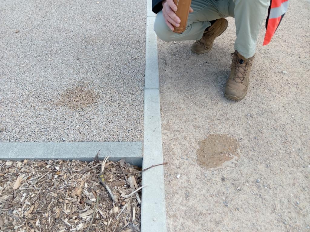 Le démonstrateur permet aux professionnel·les de voir ce qui est invisible en surface, sous les dalles : une couche de gravier sous la couche de terre.