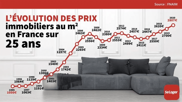 👉 En 25 ans, le prix de l’immobilier a presque triplé en France. À Paris, c’est une multiplication par cinq. L’accès à la propriété devient quasi impossible dans les villes sans avoir hérité, même avec un gros salaire. La hausse des loyers est moindre, mais ceux-ci ont plus augmenté que l’inflation.
