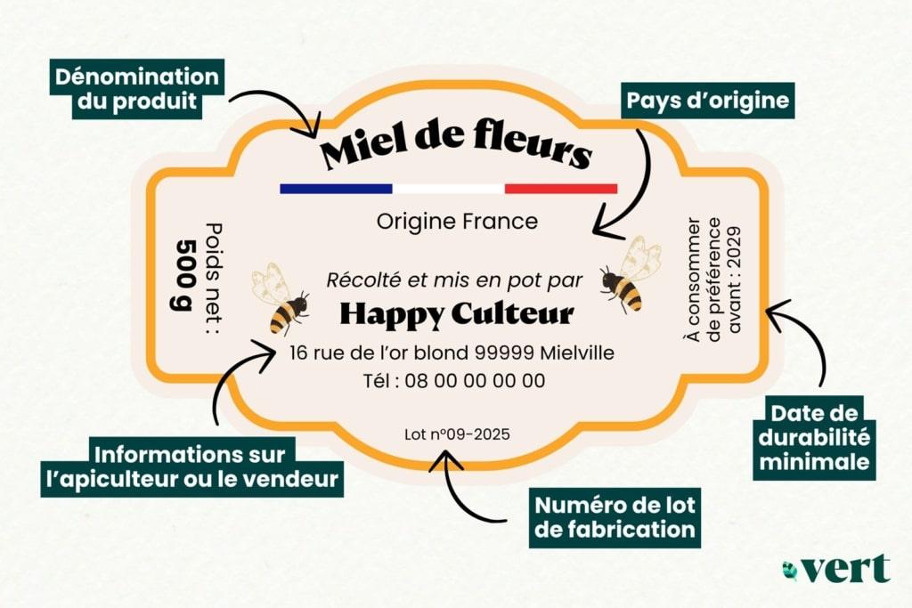 → L’indication du pays de récolte du miel est obligatoire depuis 2022. S’il s’agit d’un mélange de miels conditionnés et vendus en France, tous les pays doivent être mentionnés. Pour les miels importés, les mentions «Mélange de miels originaires de l’UE», «Mélange de miels non originaires de l’UE», «Mélange de miels originaires et non originaires de l’UE» restent possibles.