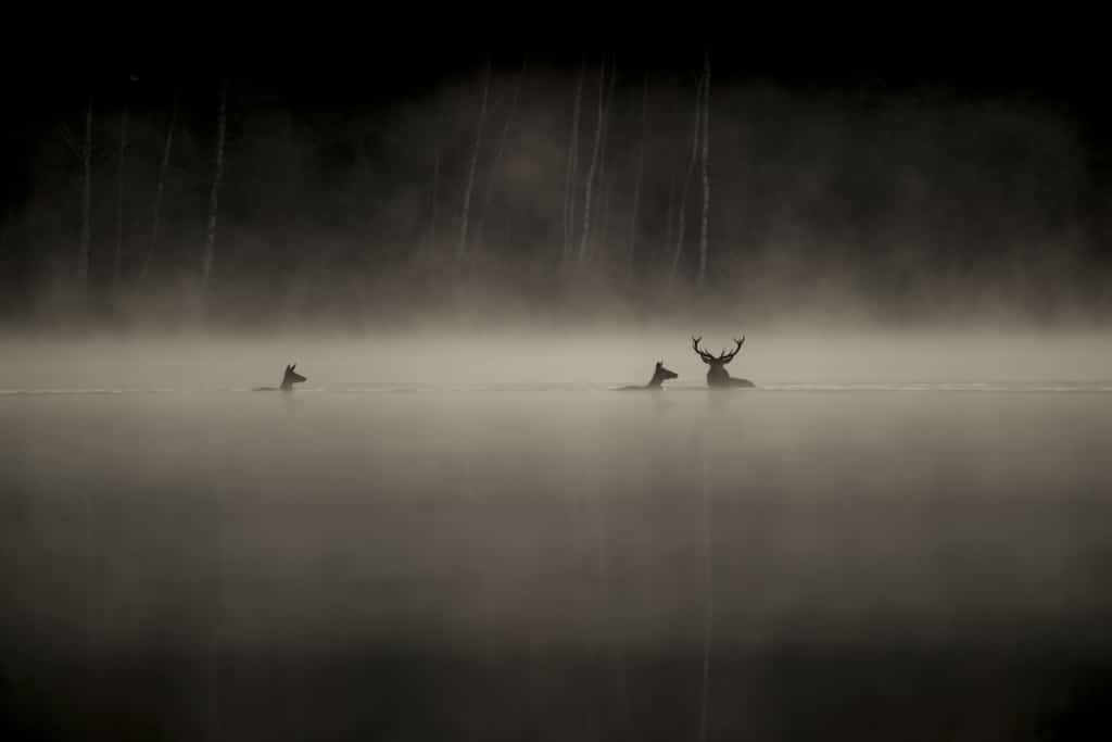 Les spectateur·ices se retrouvent plongé·es dans des jeux d’ombres et de lumières, devinant des formes sauvages dans le brouillard crépusculaire ou au travers des frondaisons percées de rayons solaires. Au loin, se distingue le chant sourd du hibou grand-duc ; plus proche, une famille de cerfs élaphes, dont les silhouettes se découpent dans la blancheur d’un étang. Constamment, les brindilles craquent, les bécasses croulent et les chevreuils aboient dans la nuit.