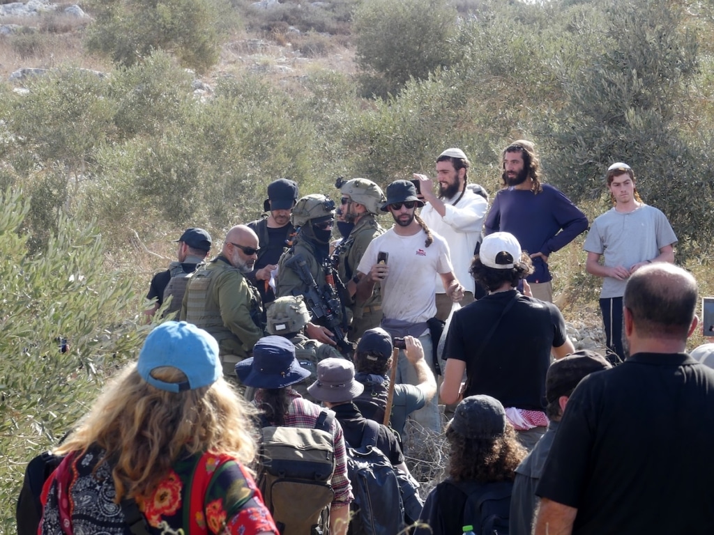 Les 9 et 16 octobre, des volontaires et paysan·nes palestinien·nes se rendent à Huwara pour récolter les oliviers situés près d’un avant-poste colonial installé depuis mars 2024. Accaparées par les colons, ces terres sont devenues inaccessibles aux Palestinien·nes. Le même schéma se répète les deux jours : dès l’arrivée des récolteur·ses, des colons font des rondes à pied et en quad. Puis, des soldats israéliens rappliquent avec plusieurs véhicules blindés.