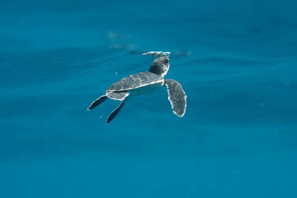 Les petits tortillons (les bébés tortues) qui émergent du sable une soixantaine de jours plus tard doivent alors rejoindre l’eau sans se faire happer par les crabes, corbeaux, chiens errants et autres prédateurs qui les attendent d’un œil avide. Les survivants – moins de 1% des éclosions – font ensuite face aux nombreuses autres menaces qui ont conduit leur espèce au bord de l’extinction au fil du 20ème siècle : chasse, pêche accidentelle, collision avec les navires, pollution plastique…
