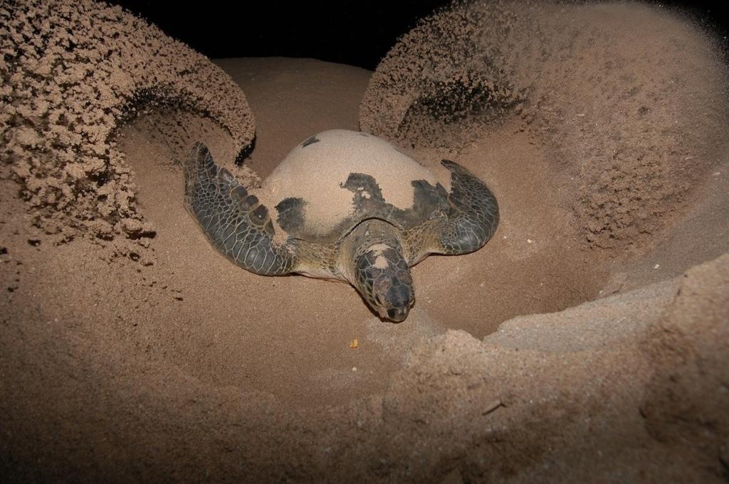 Chaque année, le même ballet recommence sur les rivages d’Afrique australe, d’Indonésie ou encore des Antilles. Après avoir nagé des milliers de kilomètres, les femelles tortues vertes retrouvent leur plage natale, se hissent lentement sur le sable pour venir y creuser un trou, où elles enfouissent ensuite une centaine de petits œufs ronds. Elles recommencent l’opération plusieurs fois pendant quelques semaines, avant de repartir au large pour des années.