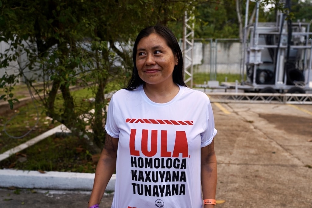 Selon l’Articulation des peuples autochtones du Brésil, 70 territoires sont actuellement à ce stade et n’attendent plus que la signature de Luiz Inácio Lula da Silva. Un peu plus loin, Leuciane Rodrigues arbore un t-shirt estampillé «Lula, homologue [le territoire] Kaxuyana Tunayana». «La terre de mon peuple est reconnue, mais pas la leur ; nous souhaitons leur apporter notre soutien», explique la jeune femme de 33 ans, dans un portugais balbutiant. Arrivée il y a une semaine après un périple en bateau de deux jours, elle est logée sur place, comme 3 000 autochtones.
