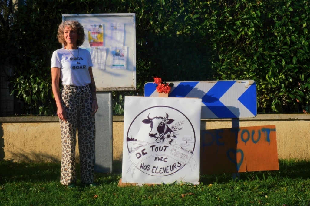 «Nous sommes un tout petit village, on se connaît tous très bien et on s’est tous sentis touchés», abonde Isabelle Eplenier. Dessinatrice à ses heures, elle a confectionné une pancarte représentant une vache avec un message de soutien aux éleveurs, qu’elle a affichée à un croisement près de la sortie du village. Dans le bourg, Evelyne Vandelle et son mari Serge ont ressorti une vieille banderole de l’association CCFD-Terre solidaire derrière laquelle elle et il ont inscrit : «Soutien à nos amis éleveurs : Nicolas, Mimille, Patrice, Florent». «Ici, nous sommes tous issus du milieu agricole, tout le monde se sent concerné», témoigne le couple auprès de Vert.