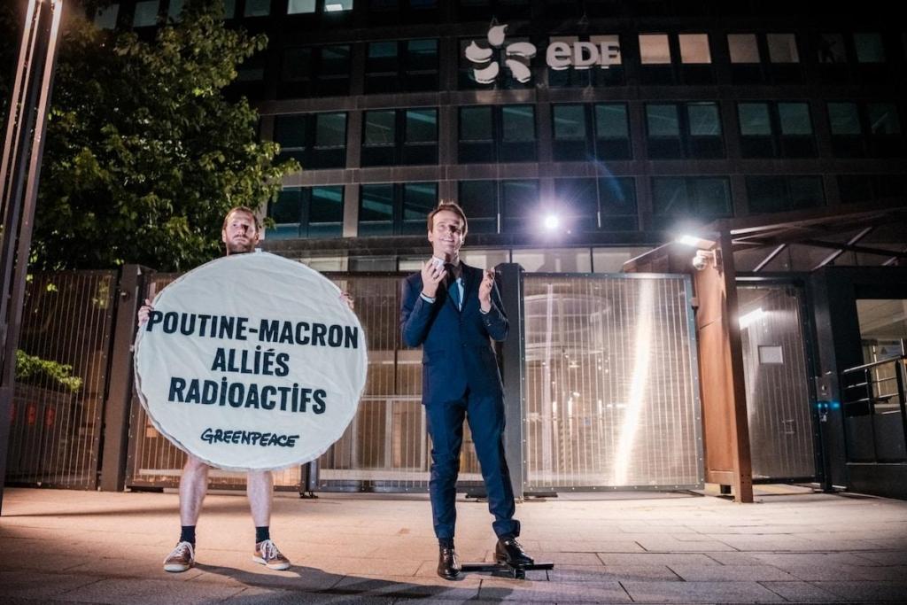 Pour le meilleur et pour la cire. Le 2 juin, les activistes de Greenpeace France ont mené deux actions de désobéissance civile pour dénoncer les liens commerciaux de la France avec la Russie, alors même que la guerre en Ukraine fait rage. Au matin, trois militant·es se sont introduit·es dans le musée Grévin et ont déroulé une banderole «Business is business» («les affaires sont les affaires») devant la statue de cire d’Emmanuel Macron avant de la subtiliser. Les activistes l’ont ensuite promenée devant l’ambassade de Russie à Paris et posée derrière trois panneaux : «Uranium», «Gaz» et «Engrais chimique». Selon l’ONG, «tant qu’il n’aura pas fait rompre les contrats français avec la Russie et impulsé une transition écologique ambitieuse et pérenne à l’échelle européenne, nous estimons qu’[Emmanuel Macron] ne mérite pas d’être exposé» au musée Grévin. Triste cire…