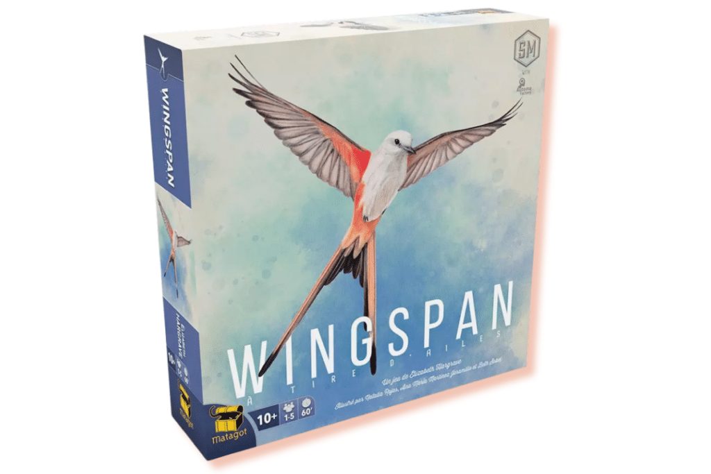Dans Wingspan, vous incarnez des ornithologues qui cherchent à attirer dans leur réserve naturelle des oiseaux d’Amérique du Nord. Chaque spécimen a des pouvoirs variés inspirés de l’espèce réelle. Parmi les 170 cartes magnifiquement illustrées, choisissez soigneusement quels oiseaux installer dans votre forêt, votre prairie ou votre marais afin de créer les meilleures synergies et marquer un maximum de points. Vous pouvez compléter avec l’extension Océanie, Asie ou Europe pour découvrir encore plus de volatiles. Il se décline également dans une version faune aquatique : Finspan.