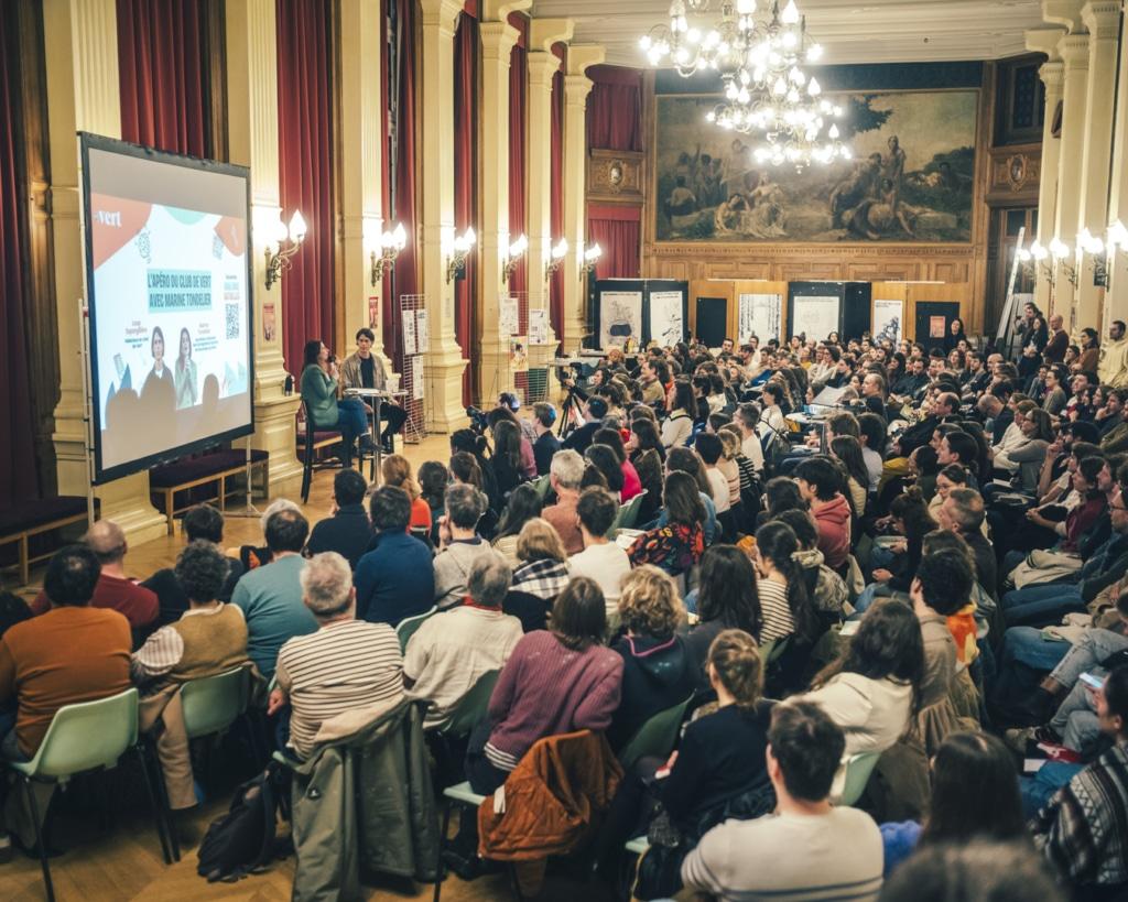 Le 27 novembre dernier, Vert a reçu Marine Tondelier à l’Académie du climat, à Paris, dans le cadre d’un Apéro du Club – ces grandes soirées qui réunissent les soutiens de notre média. 300 personnes étaient présentes pour cet entretien avec la Secrétaire nationale des Écologistes, qui a fait du combat contre l’extrême droite sa marque de fabrique. Paru en 2017 et réédité en 2024, son ouvrage Nouvelles du front livre le récit de sa vie de conseillère municipale à Hénin-Beaumont (Pas-de-Calais) face au Front national.