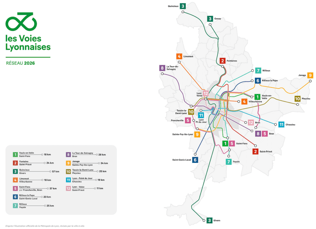 Ce jour-là, en compagnie des enfants et de Bruno Bernard, son homologue écologiste à la tête de la métropole de Lyon, il inaugure un tronçon de la Voie lyonnaise (VL) 2. Ce réseau express vélo, qui compte 12 pistes cyclables sécurisées, était une promesse de campagne des deux hommes. Loin d’être finalisées, ces Voies lyonnaises doivent permettre de traverser de part en part la métropole et ses 58 communes. Le tout en proposant un maximum de pistes séparées du trafic motorisé et des espaces piétons, ainsi qu’une signalétique et un revêtement adaptés.