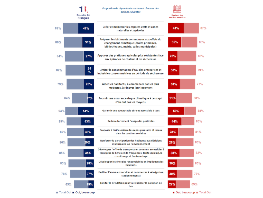 La plupart des mesures destinées à protéger les habitant·es du changement climatique sont plébiscitées. © Ifop