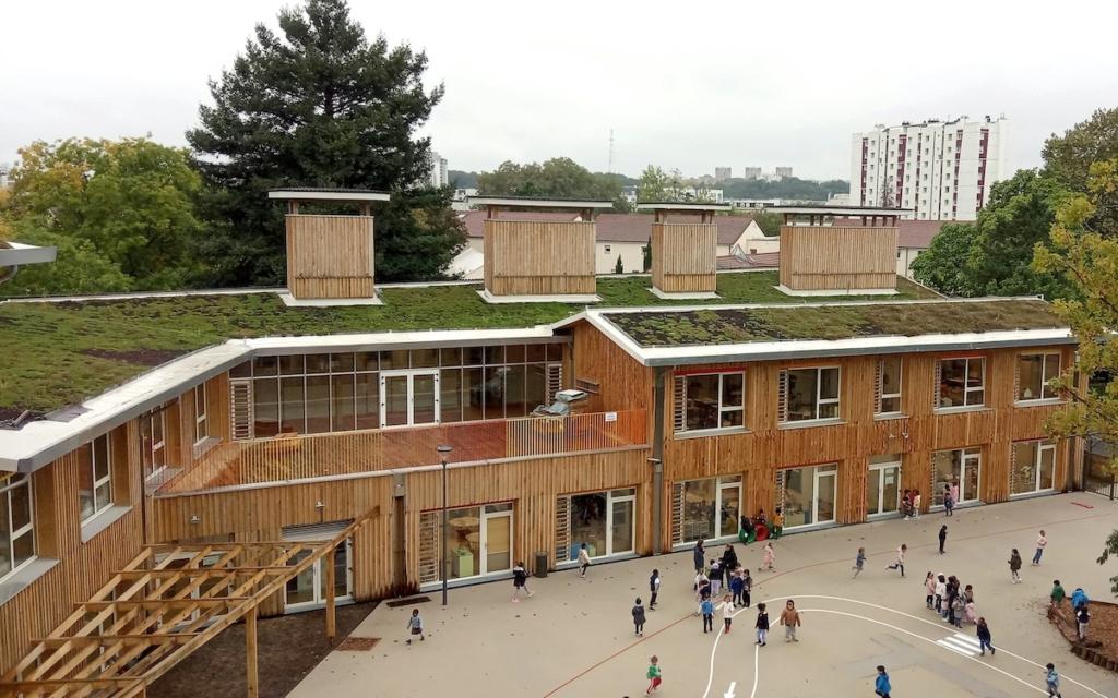 Depuis 2014, cette équipe d’une dizaine d’architectes et d’ingénieur·es a livré sept établissements scolaires conçus comme des laboratoires climatiques, dont la maternelle des Boutours, la maternelle Bois Perrier ou l’école élémentaire Jean-Mermoz. Les bâtiments sont en matériaux biosourcés : murs en bois et isolation en bottes de paille de blé. L’approvisionnement a lui aussi été pensé pour limiter l’empreinte écologique, explique à Vert Charlotte Picard, directrice adjointe du service : «La paille est achetée auprès d’agriculteurs bio situés dans un rayon d’environ 100 kilomètres, tandis que le bois massif local provient de forêts et scieries de la région.»