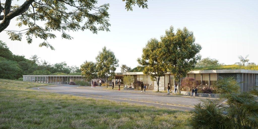 Encore en construction, cet établissement scolaire a ainsi été imaginé avec des murs en pierres issues des coulées de lave, enfermées dans des cages métalliques. «L’idée était d’utiliser ces risques comme une opportunité de projet», explique l’architecte Jeanne Demoule, qui a participé à sa conception.