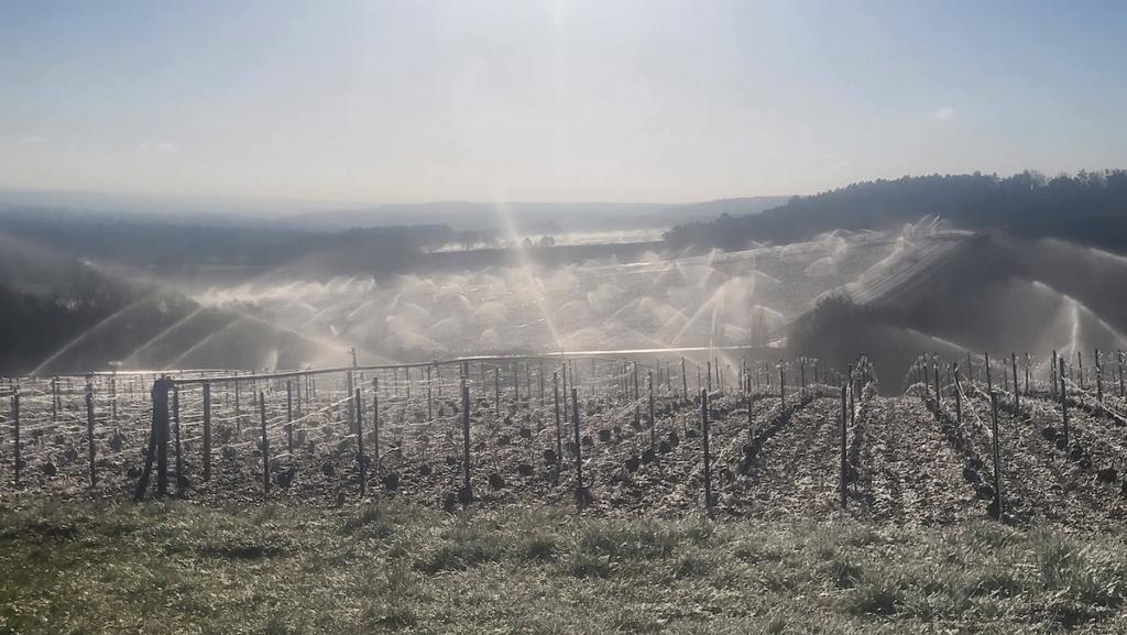 Face au gel, les viticulteur·ices tentent de limiter au mieux les dégâts. Dans l’Aube, Pauline Langry utilise un ingénieux système sur une partie de ses parcelles : l’aspersion. Avec d’autres agriculteur·ices du secteur, elle a l’autorisation de pomper de l’eau dans la rivière voisine pour l’asperger sur les vignes en cas de gel. Le résultat est contre-intuitif, mais réel : «L’eau vient se mettre autour du bourgeon et forme un cocon de glace, à l’intérieur duquel la température reste autour de zéro.» Ce système est efficace à 90%, estime-t-elle : «Ça peut nous sauver la récolte.»