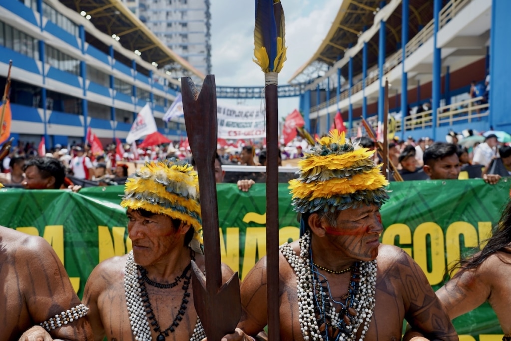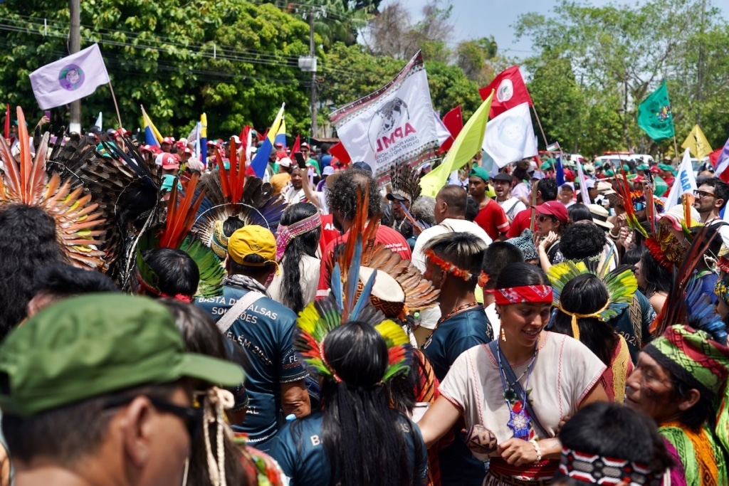Dimanche, devant une forêt de drapeaux et de banderoles, la synthèse de quatre pages qui résume le travail du sommet des peuples a été officiellement remise à une brochette de représentant·es brésilien·nes, sorti·es quelques heures de la blue zone (réservée aux négociations sur le climat) pour écouter les demandes populaires.