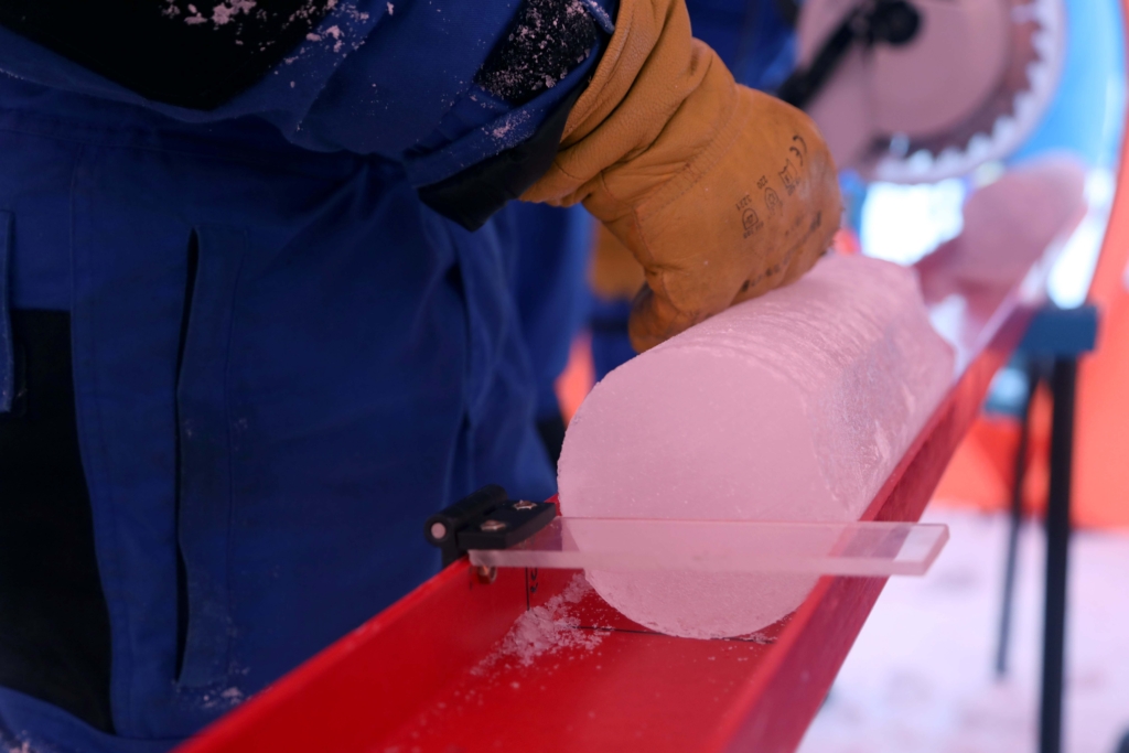 À ce jour, deux carottes de glace prélevées sur le massif du Mont-Blanc (col du Dôme, France, 2016) et au Grand Combin (Suisse, 2025) ont pu rejoindre le sanctuaire. D’une centaine de mètres chacune (1,7 tonne de glace en tout, tronçonnée et répartie dans une soixantaine de caisses), elles ont quitté l’Europe mi-octobre à bord du brise-glace italien Laura Bassi.