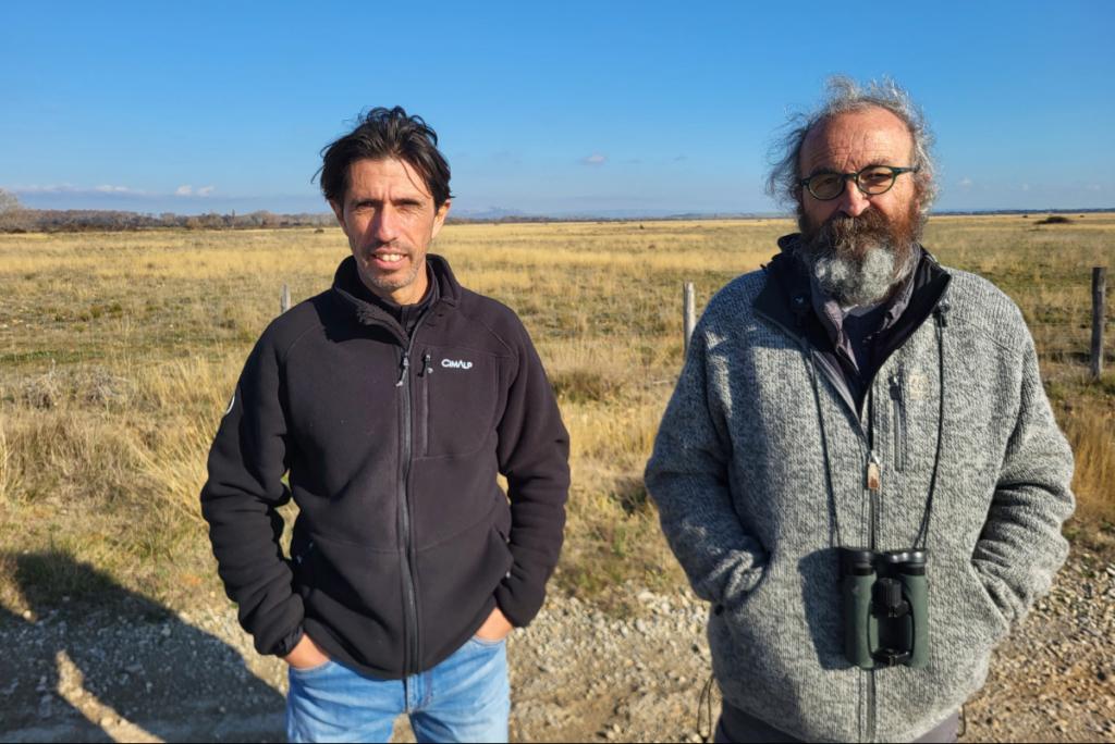 À trente kilomètres de là, aux portes d’Arles, au cœur de la plaine de Crau, Jean-Laurent Lucchesi a les yeux rivés sur une nuée de grues, de grands oiseaux migrateurs. Ce biologiste est l’un des porte-paroles du collectif THT 13/30.